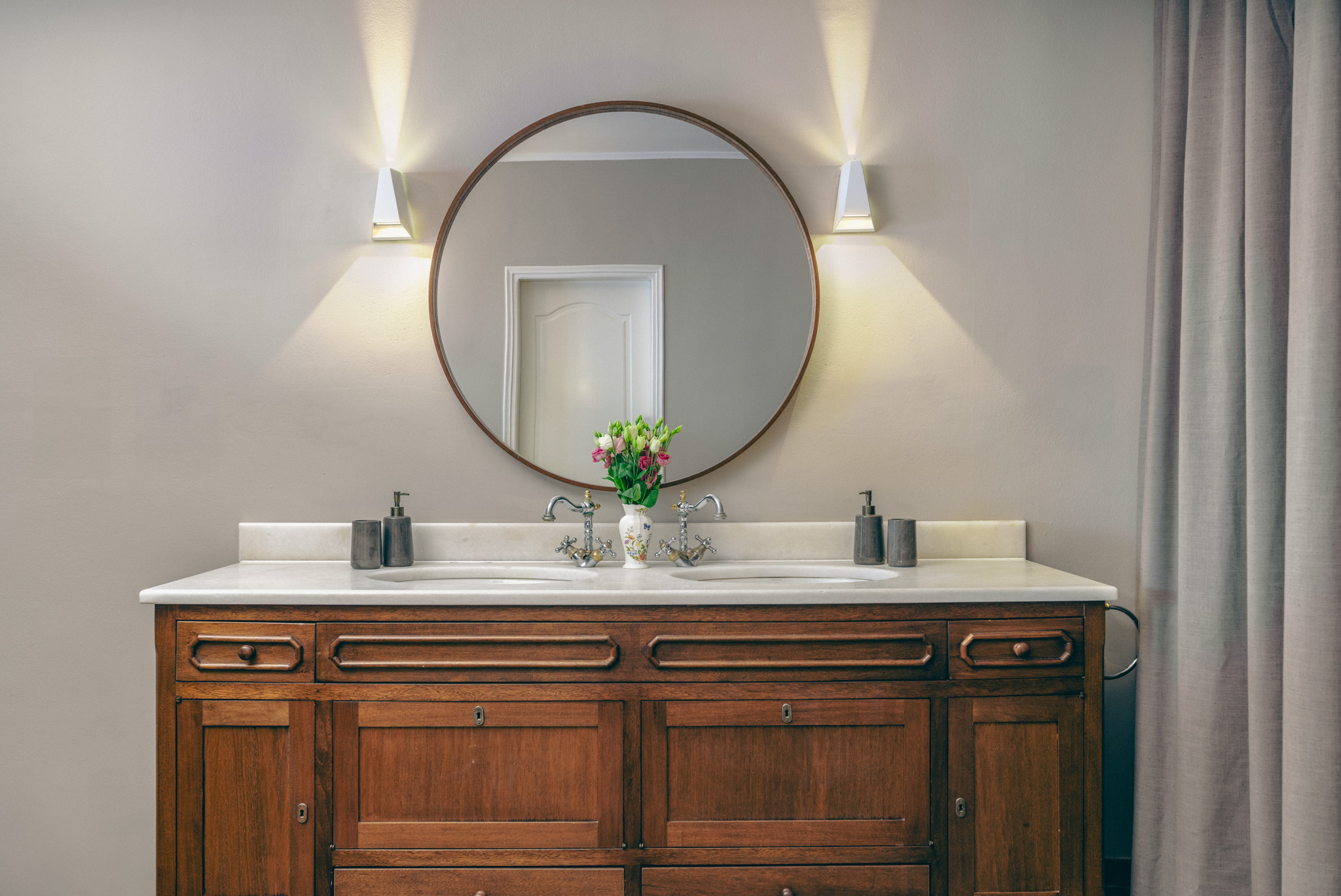 Five bathrooms ensure privacy for all guests.