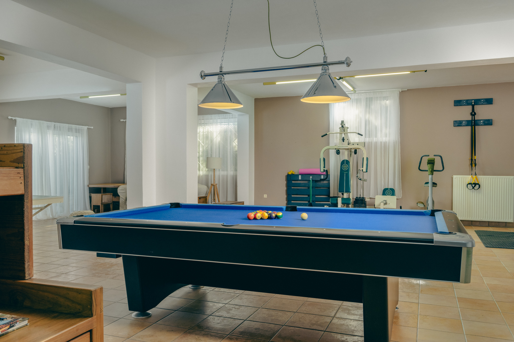 The villa has its own gym in the basement where you will also find a ‘professional’s’ American billiard, ping-pong and various activities equipment.
